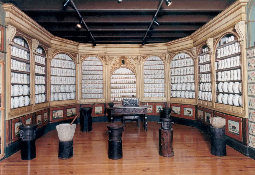 Al pasear por el sereno claustro, te encontrarás con la antigua farmacia del hospital, un espacio que conserva con gran cuidado su mobiliario original y recipientes cerámicos que han sobrevivido el paso de los siglos. Uno de los puntos destacados de la visita es el ventanal de 1696, a través del cual se entregaban los medicamentos a quienes los necesitaban, un detalle que te transportará a otra época.