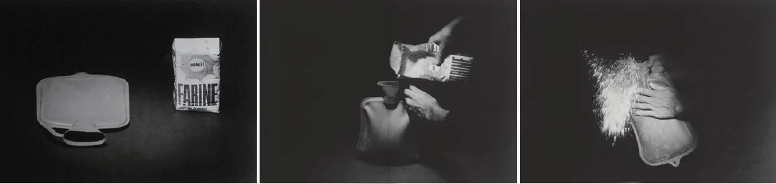 Sus primeras obras se construyen a partir del gesto mínimo: una línea plateada sobre fondo negro, una marca provocada por el roce de una puerta, la documentación fotográfica de acciones domésticas. Con el tiempo, du Colombier encontró su medio más característico en las láminas de papel Chromolux: superficies brillantes intervenidas con textos manuscritos o letras transferibles, frases ambiguas, casi cifradas, que cuestionan la relación entre lenguaje e imagen.