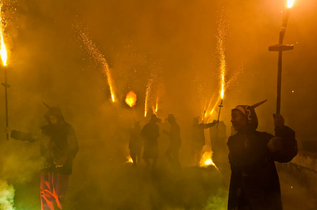 La noche se ilumina con un ‘correfoc’ triple, un espectáculo de fuego y pirotecnia que captura la esencia del enfrentamiento entre Sant Antoni y las fuerzas oscuras. Los demonios danzan entre las llamas, encarnando las tentaciones que acechan en las sombras, mientras que la figura de Sant Antoni resiste, simbolizando la fortaleza y la fe.