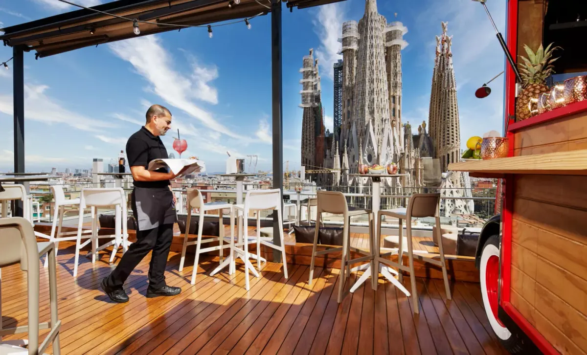 La terraza del Sercotel Rosellón es un lugar perfecto para quienes buscan disfrutar de una experiencia agradable en la ciudad de Barcelona, combinando buena comida, excelentes bebidas y vistas espectaculares.