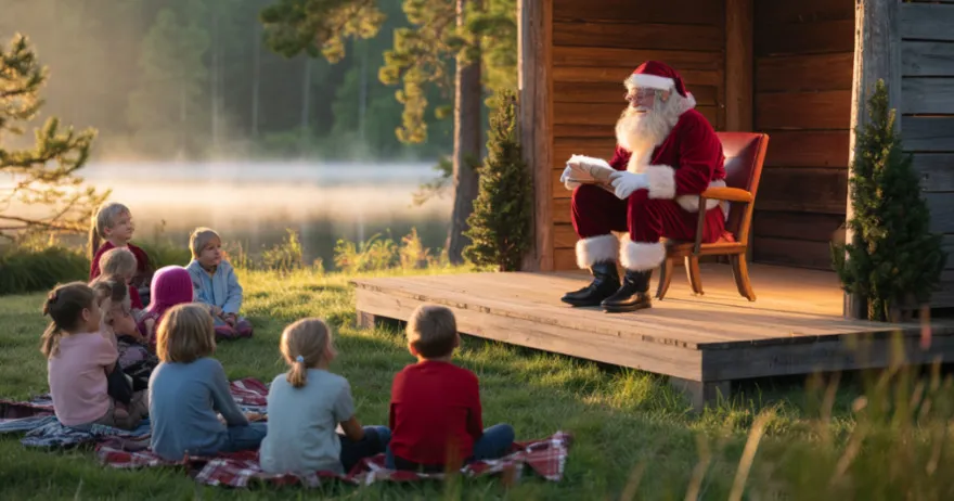 En este evocador espacio navideño en plena naturaleza, los elfos y el chocolate caliente crean un ambiente cálido, casi de cuento de hadas, que da la bienvenida a los visitantes. Aquí, los niños pueden escribir sus deseos y colgarlos en el árbol de los deseos, escuchar la historia de Papá Noel en el teatro de madera y visitar su verdadera casa, con juguetes y mesa de correo.