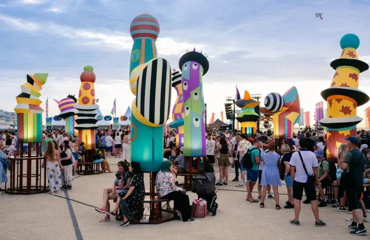 En Matadero Madrid, la plaza navideña se transformará en un país de las maravillas: aparecerán juguetes inflables gigantes y esculturas fantásticas que invitarán a los visitantes a sumergirse en una atmósfera de asombro y juego.
