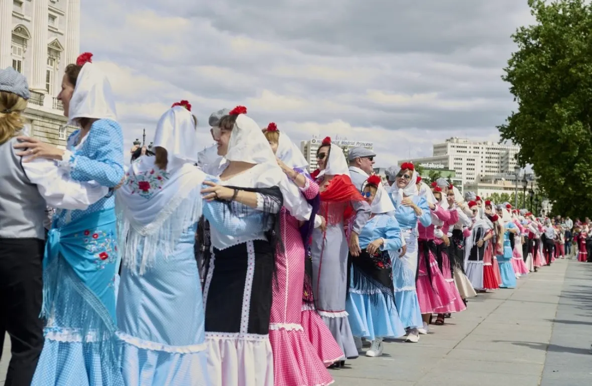 Desde la Puerta del Sol hasta la Plaza de Oriente, tendrá lugar un colorido desfile de animados bailes: pasodobles y swing, faldas de java giran y paso a paso cobran vida los chotis, símbolo de la identidad madrileña. Las calles se llenan de música, movimiento y diversión, como si la propia ciudad estuviera de cumpleaños.