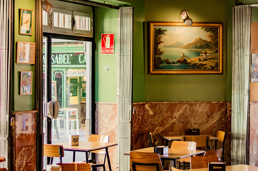 En pleno corazón de Antón Martín, bar «Benteveo» se destaca con su barra de un vibrante rojo almodovariano, convirtiéndose en un rincón icónico en la esquina de la calle Santa Isabel y San Eugenio. A través de sus amplias cristaleras se puede vislumbrar a la gente brindando, charlando y compartiendo momentos en un ambiente lleno de vida. La barra es un torbellino de energía, testigo de innumerables cañas servidas, cada una acompañada de una tapa tradicional como queso o una tostada con hummus.